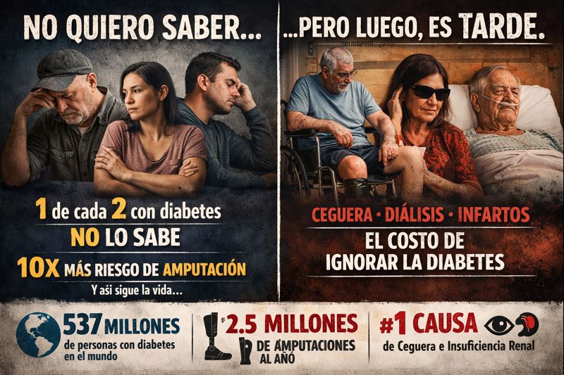 Según organismos internacionales como la OMS y la Federación Internacional de Diabetes, casi la mitad de las personas con diabetes no sabe que la padece. No porque no haya señales, sino porque no quieren mirar.
