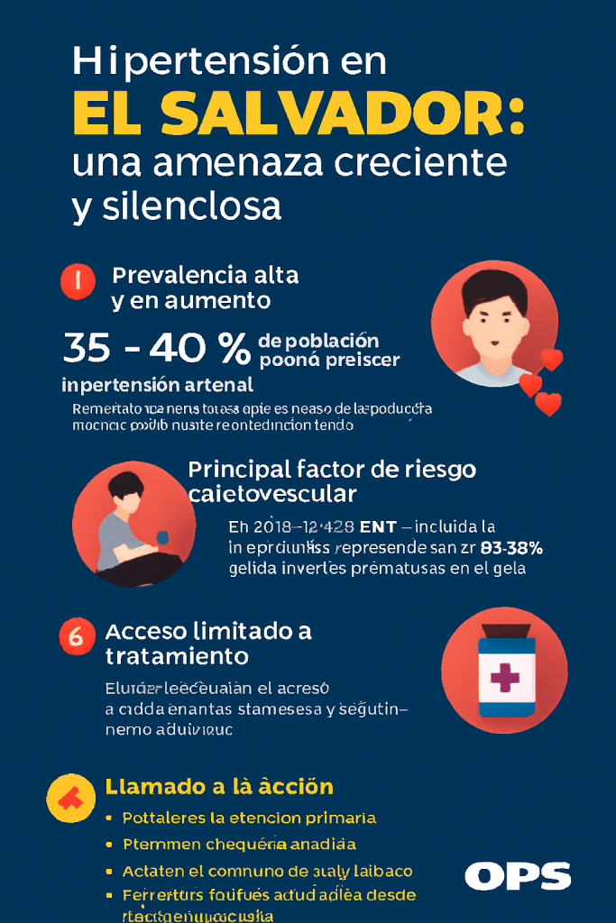 Según la Asociación de Cardiología de El Salvador, entre el 35% y 40% de la población podría padecer hipertensión arterial. Esta cifra se proyecta al alza, con riesgos de que la mitad de la población mundial la enfrente en las próximas décadas.