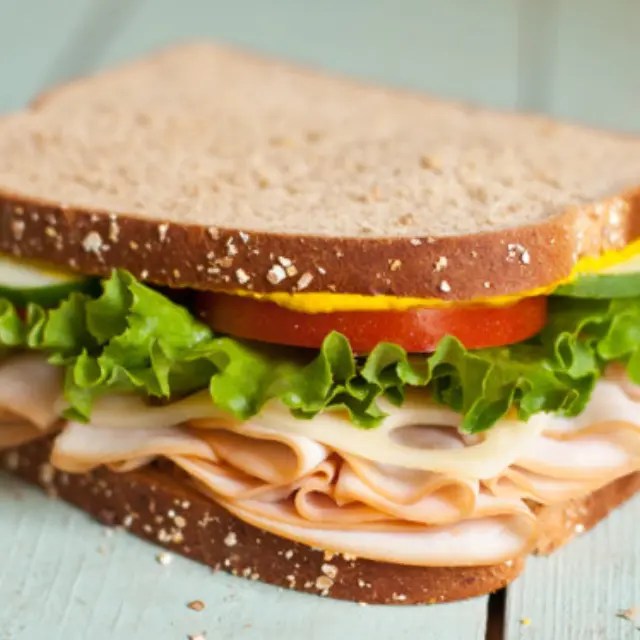 - Sándwich integral: pan de grano entero, pollo a la plancha, aguacate y verduras frescas.
